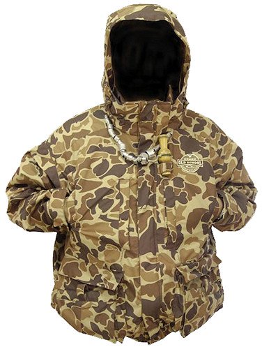 The innovative jacket that changed the waterfowl world matched with the camo pattern that started it all. Our 4-in-1 Wader Coat set the bar for utility, fit, and quality and is packed with Instinctive Features. This systems jacket has a reversible removable liner, allowing the jacket to be worn in four ways: 1) shell with liner, 2) shell alone, 3) liner alone with camouflage side out, and 4) liner alone, reversed to solid color. *Shell Features: Deep Water Handwarmer Pockets *Magnattach Chest Call Pocket *License/Key Pocket *Call Separator *Spring-Open Shell Pockets *Removable hood *HyperShield Technology 100% waterproof, windproof, and breathable protection *Adjustable neoprene cuffs *Corduroy collar - provides comfort, durability, and "old school" styling *Shell Materials: 100% poly-twill shell with 100% nylon lining *Liner Features: Water-repellent *200g polyfill insulation *Magnattach Chest Call Pocket *License/Key Pocket *Front zippered pockets *Reversible *Liner Materials: 100% poly-twill shell, 200g of 100% polyfill insulation, and 100% nylon lining